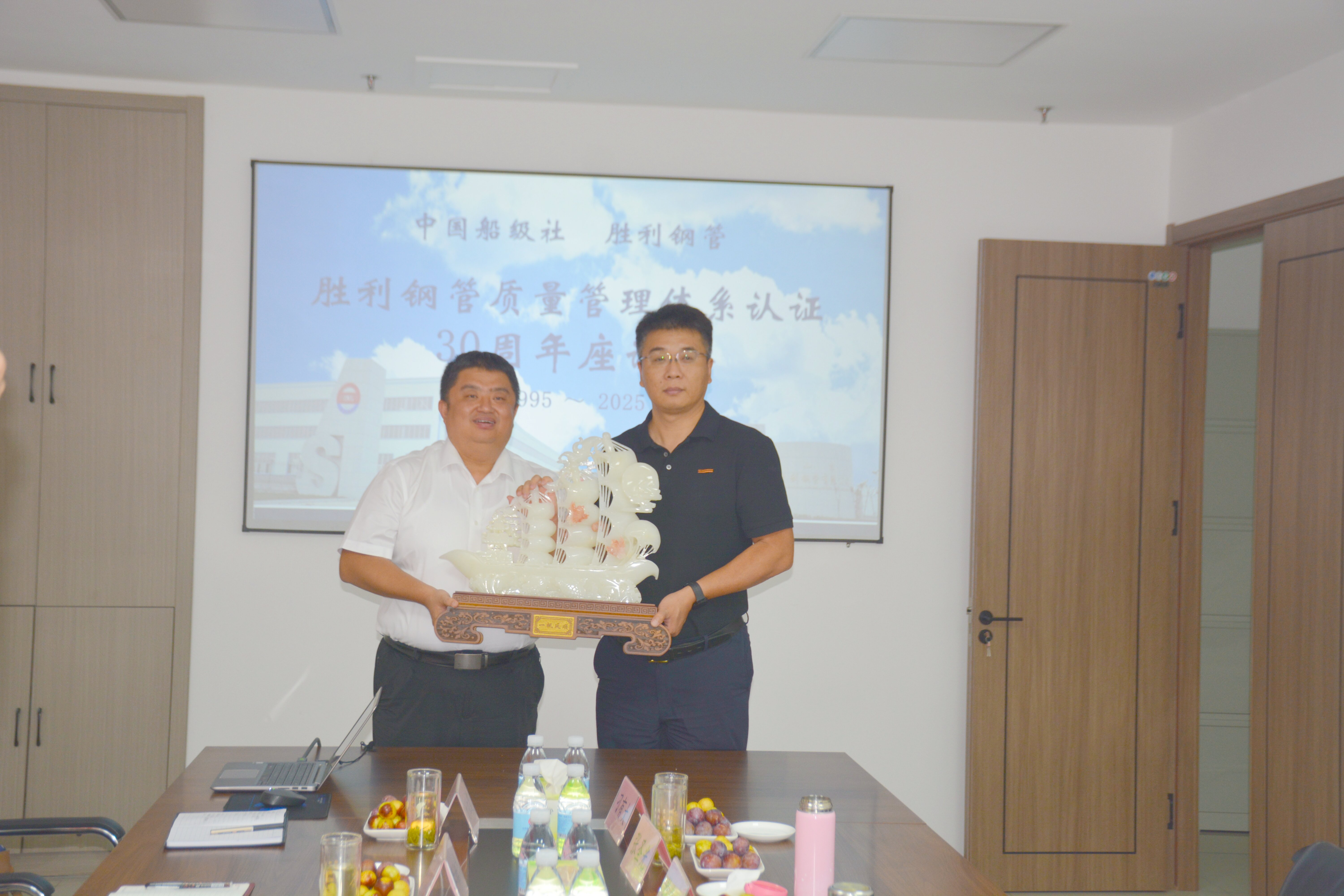 2025 年 8 月 31 日,山东胜利钢管有限公司(以下简称“山东胜利钢管”)与中国船级社质量认证有限公司(以下简称 “中国船级社”)质量管理体系认证合作 30 周年座谈会,在胜管集团会议室隆重举行。本次座谈会以 “质为本 责为魂 效为翼,三十年认证赋能企业长青” 为核心主题, 共忆合作历程,共话未来发展。