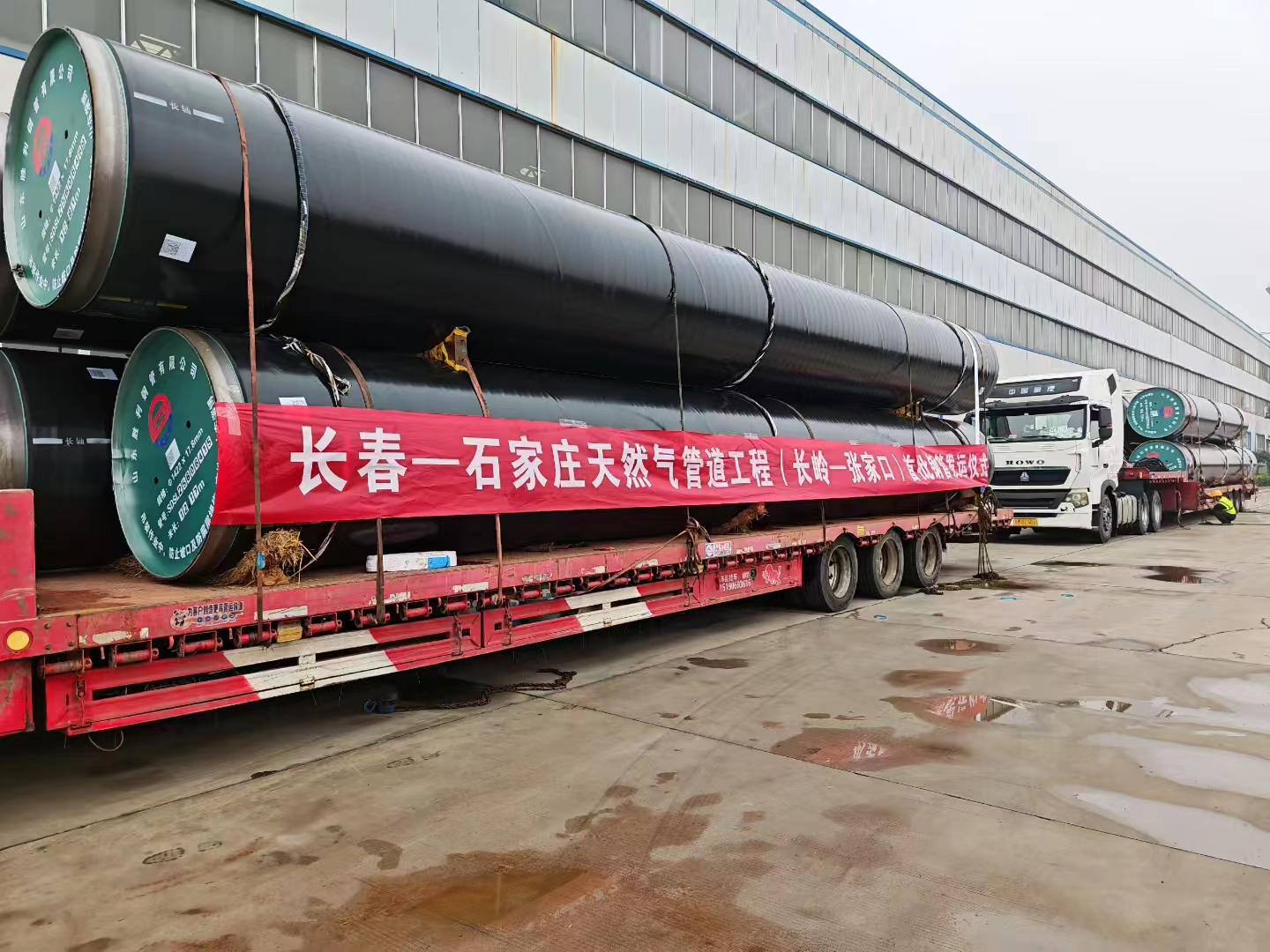 助力国家能源管道建设,凝聚力量供保长石管道。10月08日上午,长春一石家庄天然气管道工程(长岭一张家口) 首批钢管发运仪式在山东胜利钢管有限公司举行。公司副总经理王硕、销售公司、物流中心及管线监理、物流承运单位参加了本次发运仪式。首日首批次该项目用Φ1422*17.8mm常温型3LPE普通级+环氧型内减阻涂层螺旋缝埋弧焊钢管装车由山东胜利发往内蒙古赤峰中转站,标志着公司承接的长石天然气管道项目产品正式陆续开始交货。